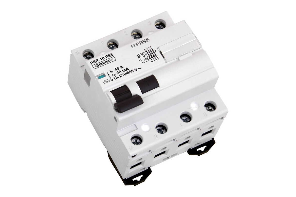 - BONEGA 06-40400302 PEP-10P63 (10 kA) proudový chránič 4P pro 0 až 40A/ 30 mA (AC)