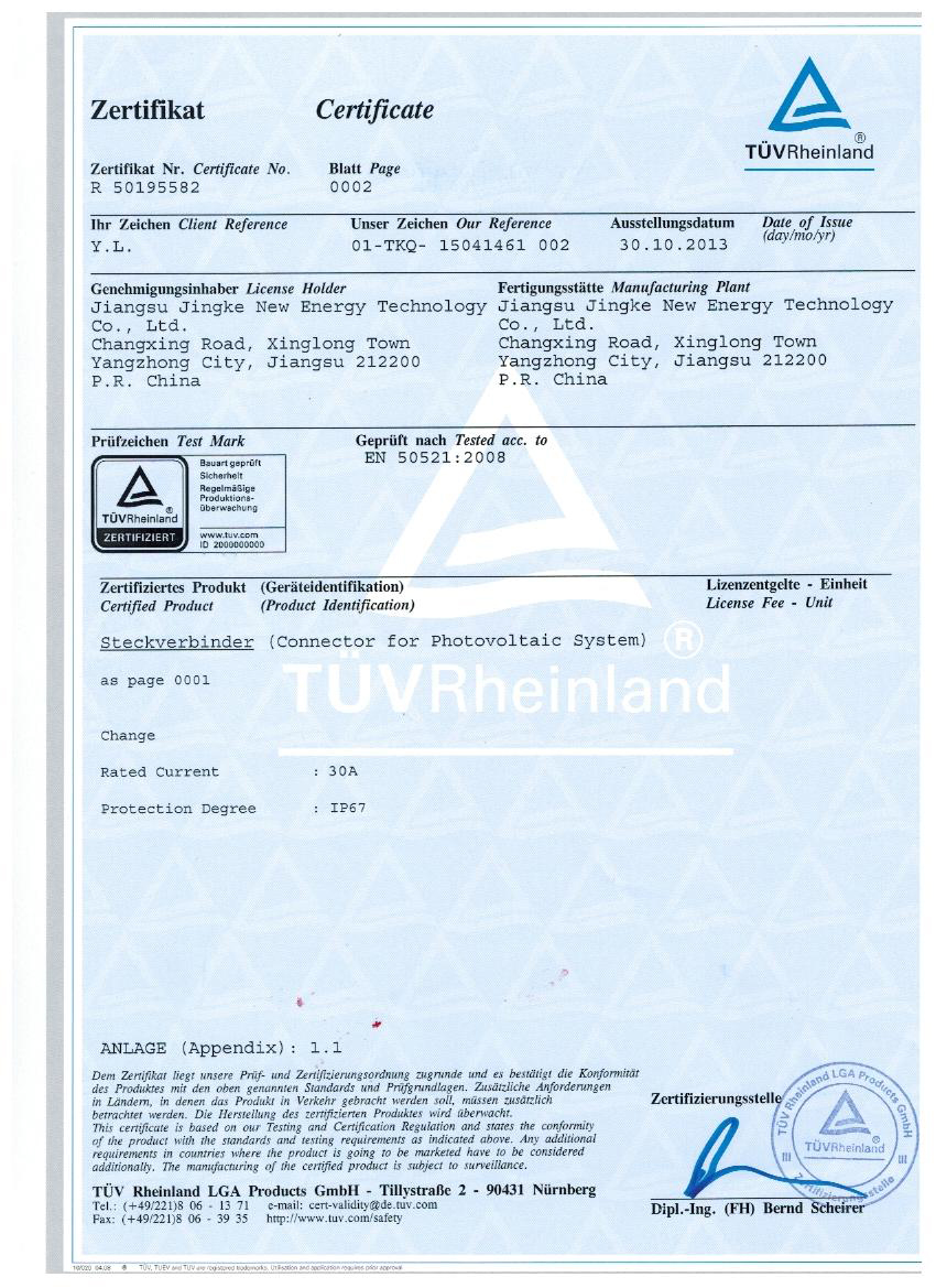 Konektory slouží k připojení fotovoltaických panelů. Jsou kompatibilní s vodiči o průřezu 1,5-6mm². Použité materiály a kvalita zpracování zaručují velmi dlouhou životnost výrobku. Třída ochrany IP67 zajišťuje voděodolnost a úplnou prachotěsnost. Konektory jsou také odolné vůči UV záření a nepříznivým povětrnostním podmínkám.